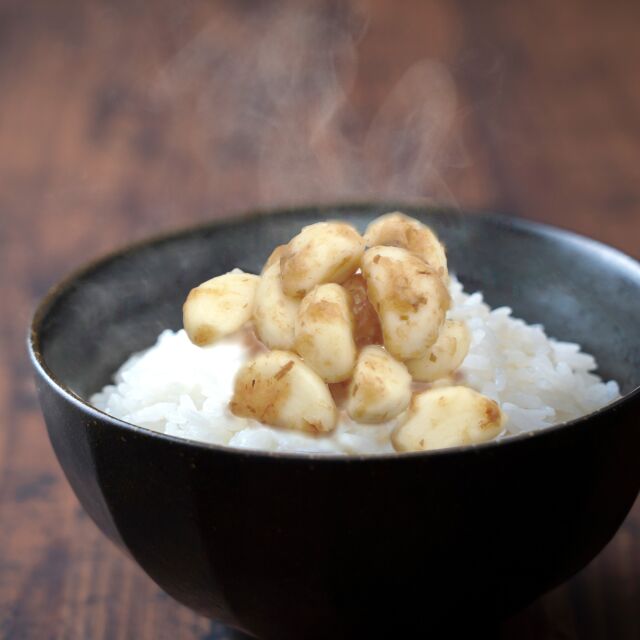 - 鰹節と梅肉の程よい酸味がからみ合い、絶妙な味わいを醸し出しています。